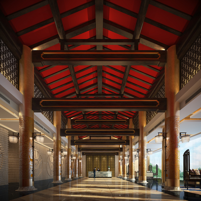 宜賓財務度假酒店采用中式皇家園林風格.設計表現其含蓄、內斂、意境、雍容華麗、嚴謹典麗、機理清晰。